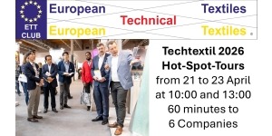 The members of the European Technical Textiles Club (ETT-Club) organize guided tours to exhibitors at Techtextil on the days of the fair between 21 – 23 April 2026. A tour takes about 60 minutes (6-7 Minutes per booth) and goes to 6 booths in one hall.
